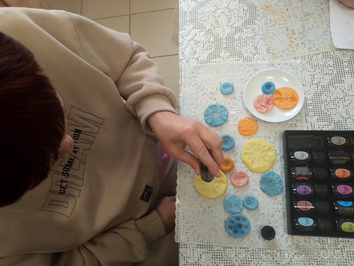 Что получится если соединить декоративно прикладное искусство и ароматерапию? Получатели социальных услуг ОГБУСО «Шебертинский ДСО» под руководством руководителя кружка Плешановой Анны Александровны попробовали это сделать. Получился замечательный результат. Из глины и соленого теста  (с добавлением ароматических масел) изготовили аромакамни и аромакулоны, которые несут не только эстетическую красоту, но дают возможность наслаждаться приятными и полезными ароматами. Результатами своего труда с удовольствием поделились с другими получателями социальных услуг.