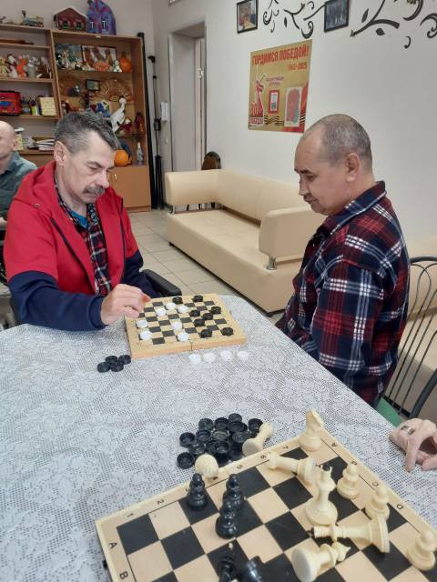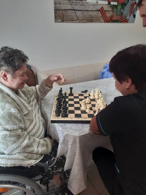 Шахматы – это не просто игра, это целая вселенная, где сталкиваются интеллект, логика и интуиция. Это спорт, искусство и наука, слитые воедино на 64 клетках шахматной доски. Для многих получателей социальных услуг ОГБУСО «Шебертинский дом социального обслуживания» шахматы стали не только способом времяпрепровождения, но и возможностью поддерживать ум в тонусе, развивать стратегическое мышление и находить радость в интеллектуальном соревновании. В свободное время любители шахмат находят себе партнера для приятного общения за любимой игрой.