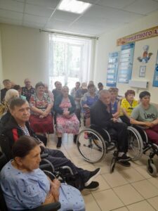 9 июля ОГБУСО «Шебертинский дом социального обслуживания», с концертной программой, посетил творческий коллектив ОГБУСО «Психоневрологический интернат п. Водопадный» под руководством культорганизатора Байковой Елены Васильевны. Коллектив приготовил для получателей социальных услуг замечательные вокальные номера. С восторгом зрители встречали ложкарей, которые исполнили танец и попурри на эстрадные песни. Выступление коллектива вызвало большой эмоциональный отклик у зрителей, растрогав некоторых до слез. Каждый подпевал и поддерживал аплодисментами артистов. В конце мероприятия Елена Васильевна исполнила песню с хорошими пожеланиями, а зрители не хотели отпускать артистов и выразили надежду на то, что в скором времени этот замечательный коллектив вновь посетит нас и порадует своим творчеством.