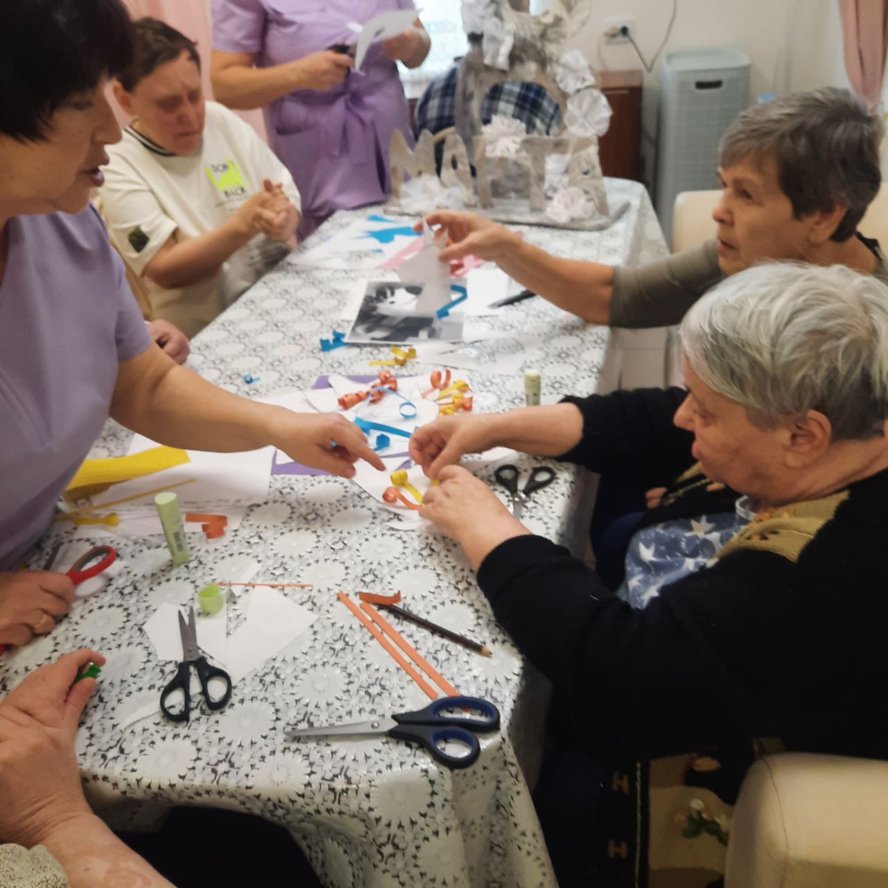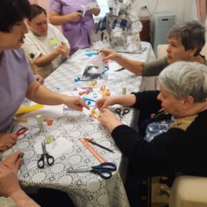 Под руководством младших медицинских сестер по уходу за больными Старостенко С.А. и Шабаевой С.Г. получатели социальных услуг ОГБУСО «Шебертинский ДСО» взялись за, казалось бы, простые материалы: картон цветная бумага, клей и сверкающие стразы. Но из этого нехитрого набора получались прекрасные лошадки! Процесс создания любой поделки — это не только весело, но и очень полезно. Он отлично развивает мелкую моторику, терпение, внимательность к деталям и, конечно же, творческое воображение. А главное — дарит ни с чем не сравнимое чувство радости от того, что можно создать красоту своими руками. В процессе работы участники занятия не только мастерили, но и общались, делились идеями и наполнялись творческой энергией. Каждая лошадка получилась со своим характером и не похожая на другие.