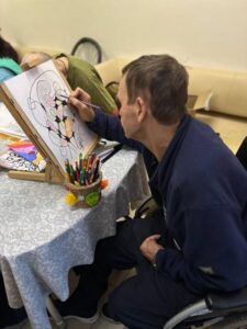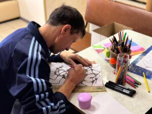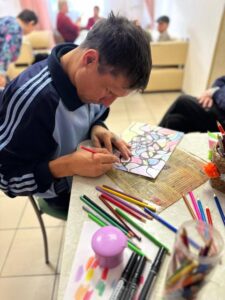 13 февраля в ОГБУСО «Шебертинский дом социального обслуживания» прошел мастер-класс по нейрографике. Занятие с получателями социальных услуг провела психолог Частоступова Татьяна Сергеевна. Они с большим удовольствием участвовали в данном мероприятии. С помощью нейрографического рисунка, который представляет собой изогнутую линию, складывающуюся в геометрические фигуры, изображаются неосознанные страхи, убеждения, напряжение и прошедший опыт из жизни человека. Проведение таких практик помогает избавиться от комплексов и психологических травм, а также устраняет блокирующие установки в сознании человека.