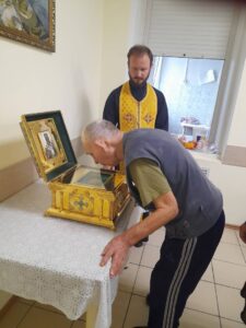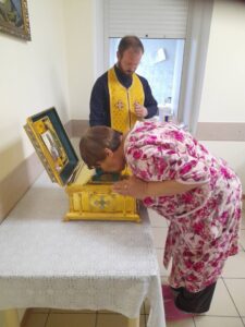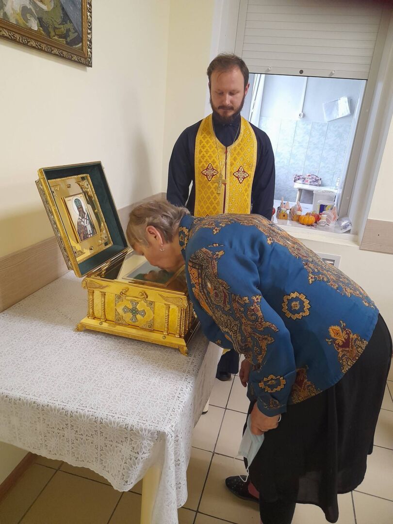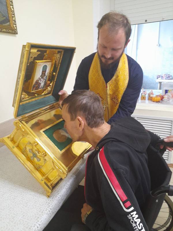 Отец Владимир рассказал получателям социальных услуг о жизни святителя Иннокентия и дал возможность поклониться святым мощам.