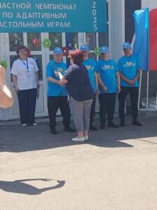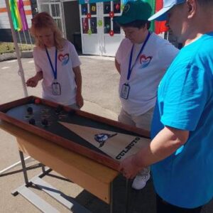 20 июня команда получателей социальных услуг ОГБУСО «Шебертинский дом социального обслуживания» приняла участие в Чемпионате по адаптивным настольным играм, который был организован ОГБУСО «Саянский психоневрологический интернат» в рамках реализации Региональной программы Иркутской области «Активное долголетие».Чемпионат состоял из 6 этапов. Общее число командных очков – сумма набранных очков на каждом этапе. Наша команда достойно представила наше учреждение и заняла 4 место в Чемпионате.