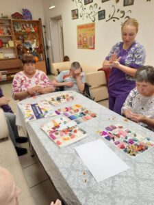Работа с пластилином – это хороший метод восстановления мелкой моторики, способ выражения своего творческого настроения. Данная терапия является доступной для людей любого возраста и особенно эффективна для пожилых людей и людей c ограниченными возможностями. В ОГБУСО «Шебертинский дом социального обслуживания» занятия пластилинографией носят регулярный характер. 11 октября персонал нашего учреждения организовал для получателей социальных услуг очередное занятие, на котором участники лепили из пластилина веточку рябины. Такая коллективная работа не только несет пользу для организма, но и сближает людей и помогает развитию мыслительной и творческой деятельности. Каждый участник занятия остался доволен результатом своего творчества.