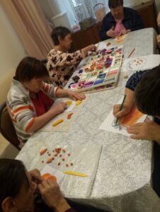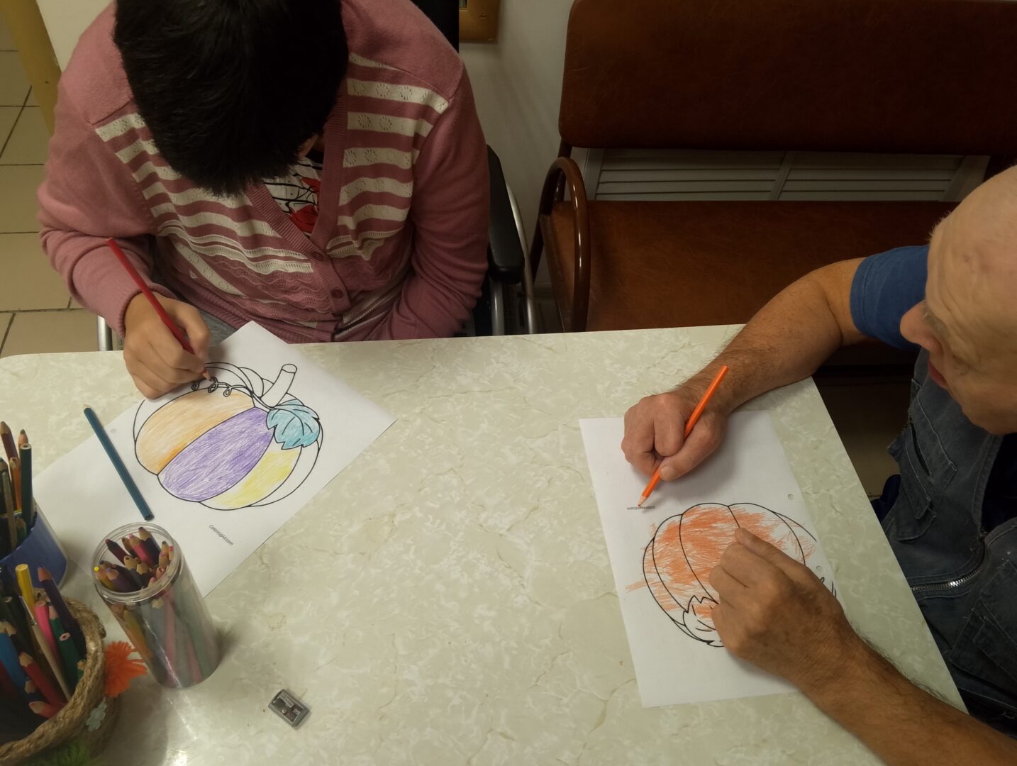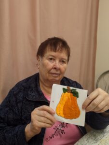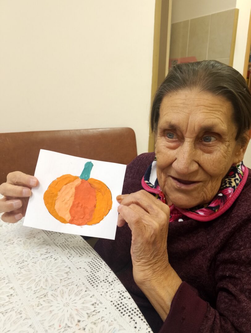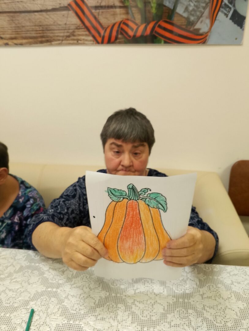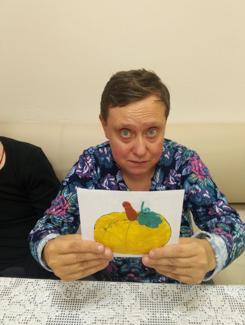 Последний день октября в ОГБУСО «Шебертинский ДСО» расцвел веселыми, радостными, яркими оттенками желтого цвета. Получатели социальных услуг создавали портреты тыквы. Прежде чем приступить к творчеству каждый выбрал для себя любимый сорт и размер тыквы, а затем приступили к раскрашиванию рисунка, используя для этого акварельные краски и пластилин. Каждый работал в своей технике, и у каждого художника получился свой неповторимый портрет замечательного овоща — тыквы.