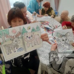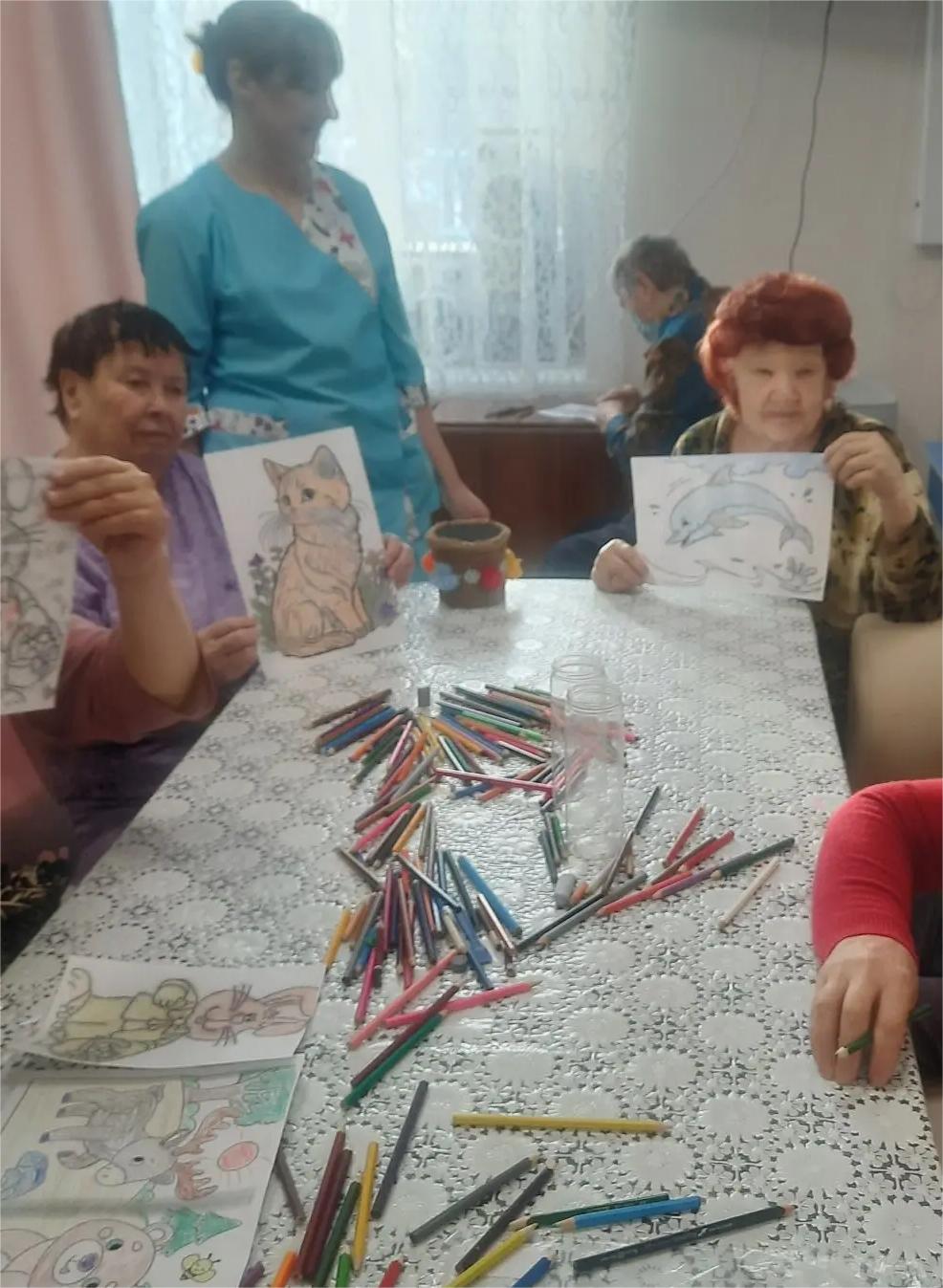 В ОГБУСО «Шебертинский ДСО» прошло очередное занятие по арт-терапии — раскрашивание картинок, это одно из любимых занятий получателей социальных услуг. Раскрашивание картинок заметно снижает уровень стресса и депрессии, наполняя участника занятия позитивными эмоциями. Процесс раскрашивания положительно, успокаивающе влияет на миндалины – части мозга, связанные с реакциями страха и стресса. При этом больше активизируются участки мозга, ответственные за творчество и логику. Но в сравнении с другими творческими активностями раскраска «работает» более эффективно для мозга, позволяя ему лучше расслабиться. Так как во время раскрашивания нет необходимости задумываться о чем-то сложном или создавать что-либо с нуля, как, к примеру, в рисовании. Нужно просто следовать шаблону – именно он избавляет нас от необходимости активно мыслить. Это дает возможность мозгу отдохнуть и восстановить энергию.