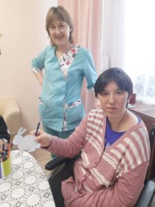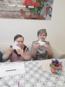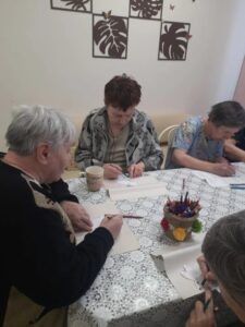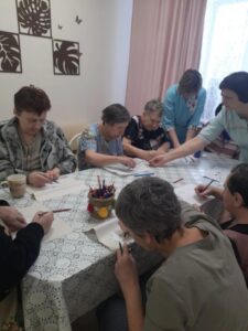Арт-терапия — это эффективный инструмент для поддержания жизненного тонуса, активности и позитивного настроения у пожилых людей и людей с инвалидностью. Она особенно актуальна для людей, которые, столкнувшись с обилием свободного времени, так как они могут потерять ориентиры и впасть в депрессию, сосредоточившись на негативных мыслях и болезнях. В ОГБУСО «Шебертинский ДСО» регулярно проводятся занятия по арт-терапии, среди которых особой популярностью пользуется раскрашивание различных картинок. В воскресенье получатели социальных услуг с удовольствием вырезали и раскрашивали зайчиков по шаблону. Этот процесс оказывает успокаивающее и благотворное влияние. Отсутствие необходимости придумывать что-то сложное или творить с нуля, как при рисовании, позволило участникам расслабиться и дать мозгу отдохнуть, просто следуя готовому образцу. Таким образом, раскрашивание значительно снижает стресс и депрессию, вызывает позитивные эмоции, помогает пожилым людям обрести спокойствие, радость и полноту жизни, почувствовать себя комфортно, справиться с внутренними переживаниями и испытать удовлетворение.
