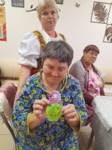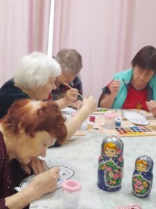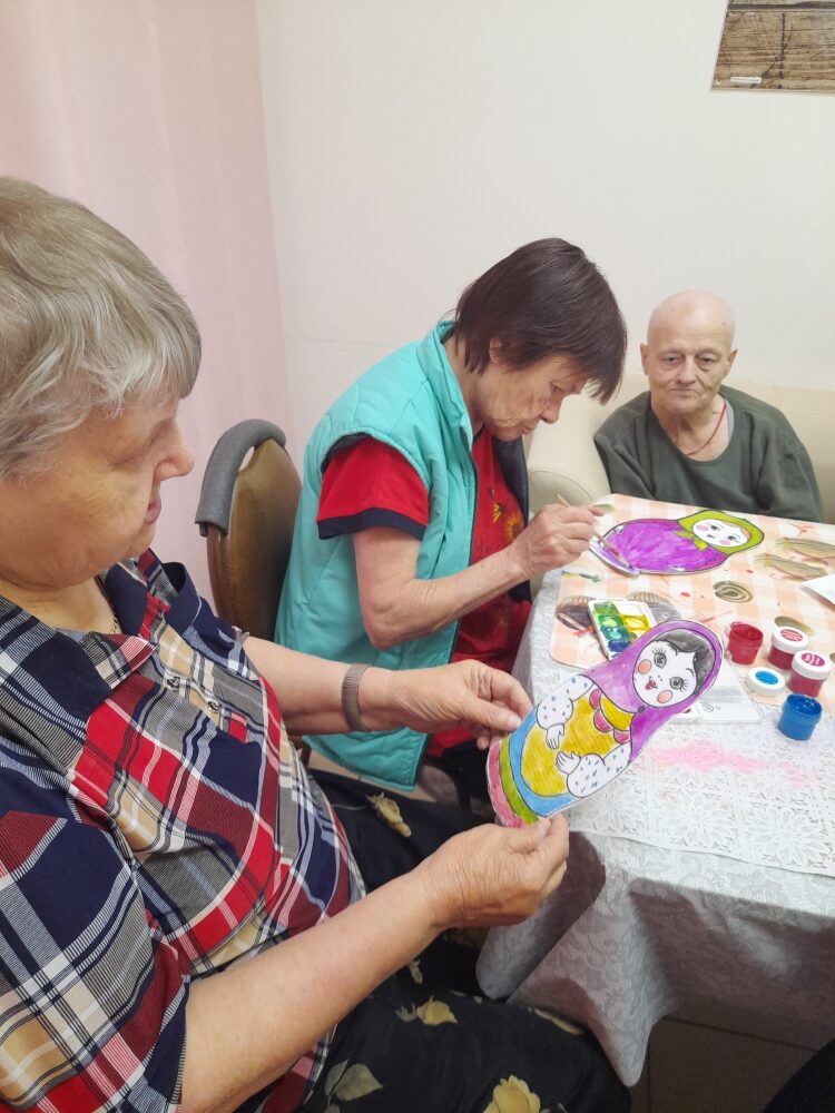 В ОГБУСО «Шебертинский дом социального обслуживания» прошло познавательное занятие на тему «Русская народная игрушка – матрешка». Библиотекарь Шебертинского СДК Коба Алена Юрьевна и культорганизатор Бархатова Татьяна Валентиновна провели для получателей социальных услуг мероприятие, на котором рассказали присутствующим историю появления матрешки, о том, как она приобрела народную любовь и стала всемирным сувениром, познакомились с некоторыми видами ее росписи. Каждому участнику предложили превратиться в мастера – умельца, который должен расписать свою матрешку. Все очень старались создать самую красивую матрешку. Матрешка — символ дружбы, любви и пожелания счастья и благополучия.