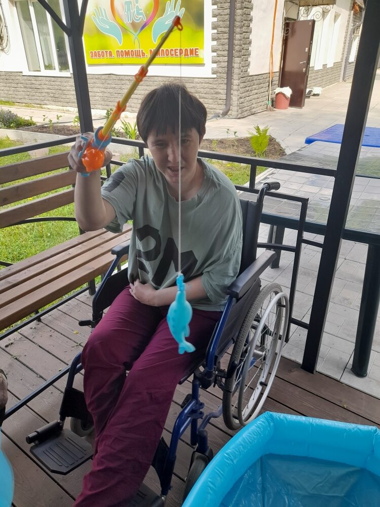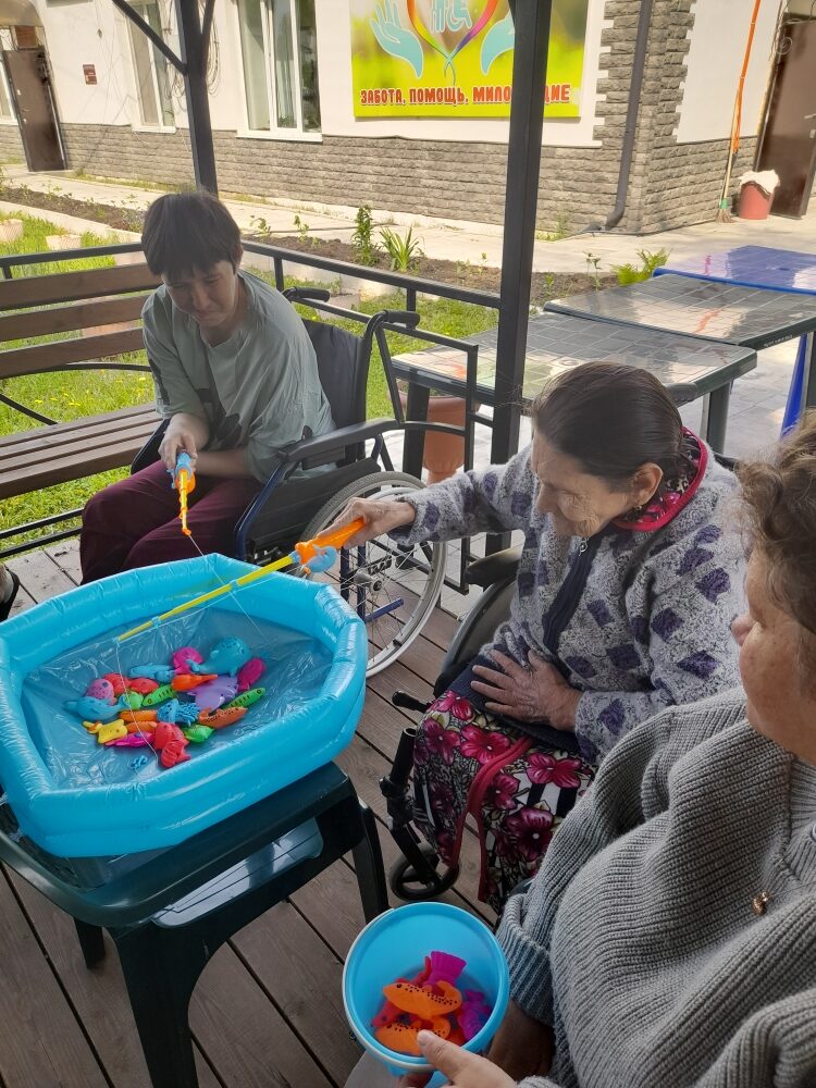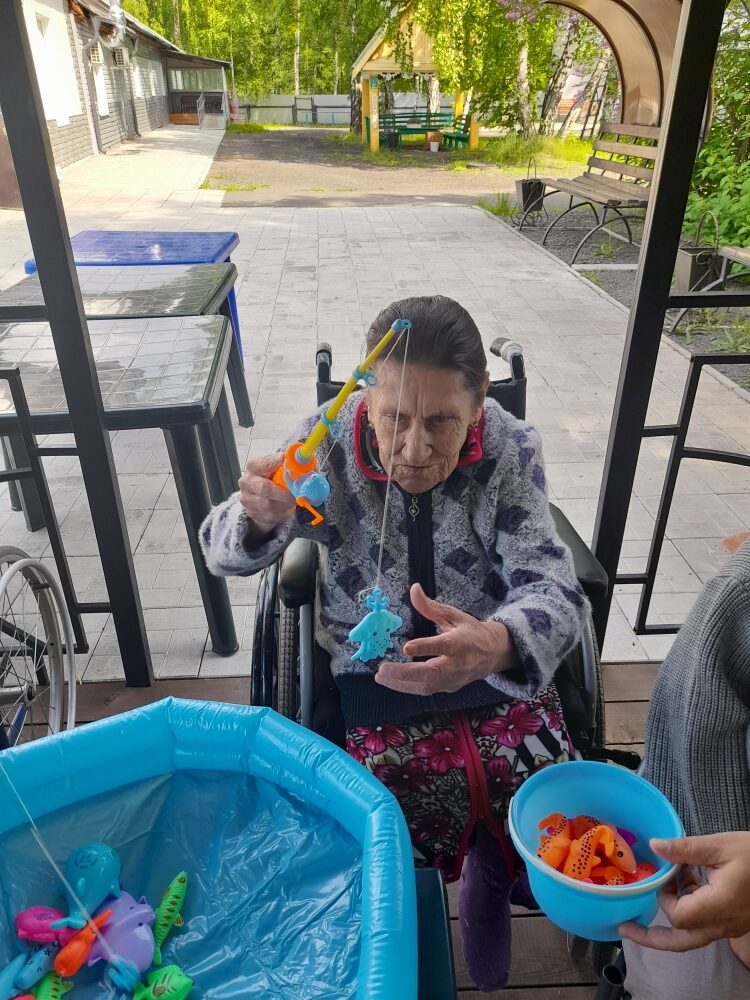 Организация досуга пожилых людей определяет качество их жизни в учреждении не меньшей степени, чем здоровое питание и медицинское обслуживание. Но не все формы развлечения доступны пожилым гражданам. В ОГБУСО «Шебертинский дом социального обслуживания» сотрудники организуют разные формы интересного провождения свободного времени, это и праздники, и прогулки на воздухе, разного рода конкурсы, игры и другие виды физической активности. Сегодня получатели социальных услуг нашего учреждения смогли порыбачить. Эта нехитрая игра вызвала эмоциональный отклик у каждого участника. Они неподдельно радовались, если кому-то удавалось поймать рыбку, подсчитывали улов и болели друг за друга. Несомненно, любая игра благотворно влияет на наших подопечных, отвлекает их от болезней и мыслей об изоляции, снимает стресс, уравновешивает эмоции.