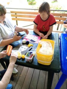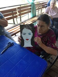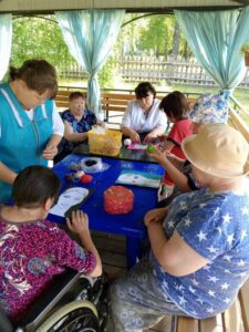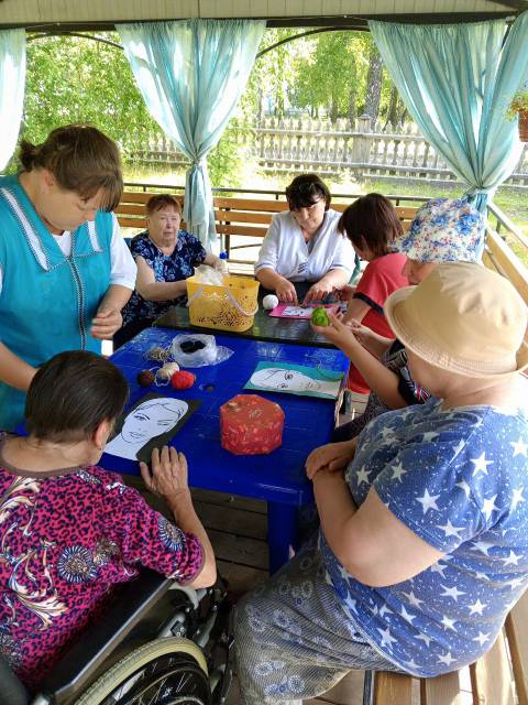 Занятия аппликацией с пожилыми людьми — улучшают моторику. Этот вид декоративно-прикладного искусства по праву считается одним их самых простых, доступных и понятных. Получатели социальных услуг ОГБУСО «Шебертинский дом социального обслуживания» с удовольствием создают красивые и яркие картины из цветной бумаги. Это процесс не только позволяет творчески проявить себя, но и тренирует мелкую моторику рук. Занятия аппликацией развивают внимательность, аккуратность, а также положительно сказываются на художественном воображении, эстетическом вкусе, абстрактном и объектном мышлении. Под влиянием творческих занятий улучшается эмоциональное состояние пожилых людей, у них восстанавливается чувство нужности, значимости, ответственности и причастности. 19 июля работники учреждения для получатели социальных услуг подготовили веселое занятие, на котором они создавали портретные картины, в которых при помощи аппликации создавали прически.