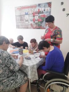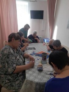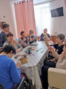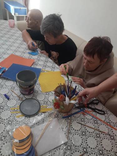 В выходной день получателям социальных услуг ОГБУСО «Шебертинский ДСО» скучать не приходится ведь персонал нашего учреждения всегда знает чем можно заняться. На этот раз на этот раз участникам занятия предложили изготовить из бумаги «веселые облачка». Участники занятия с удовольствием приступили к работе. Используя шаблоны, цветные карандаши и цветную бумагу они изготовили замечательные поделки. А радость совместного общения, творчества и дружеская обстановка дают заряд хорошего настроения на весь день.