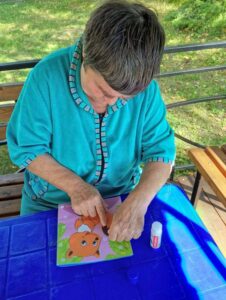 Занятия аппликацией с пожилыми людьми — улучшают моторику. Этот вид творческой деятельности по праву считается одним их самых простых, доступных и понятных. Получатели социальных услуг с удовольствием создают красивые и яркие картины из цветной бумаги. Это процесс не только позволяет творчески проявить себя, но и тренирует мелкую моторику рук. Занятия аппликацией развивают внимательность, аккуратность, а также положительно сказываются на художественном воображении, эстетическом вкусе, абстрактном и объектном мышлении. В ОГБУСО «Шебертинский дом социального обслуживания» регулярно проходят как групповые, так и индивидуальные занятия аппликацией. Под влиянием творческих занятий улучшается эмоциональное состояние пожилых людей, у них восстанавливается чувство нужности и значимости.